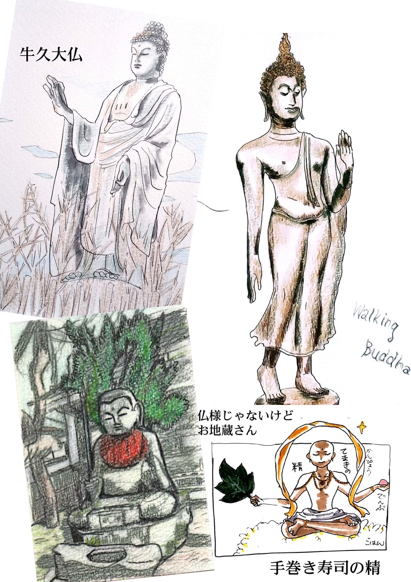 干瓢とでんぶを持ってうちわで酢飯をあおぐ手巻き寿司の精。